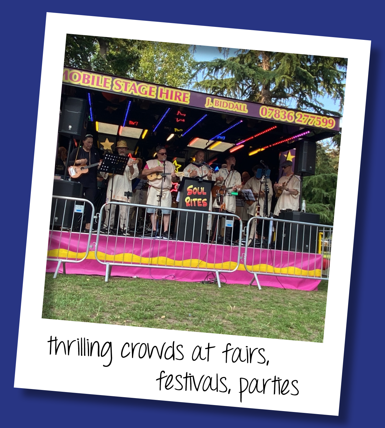 We’re equally at home on a big or small stage, acoustic or electric, indoors or out.